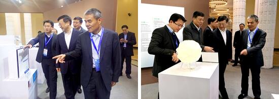 图为:上海政协李逸平副主席、上海市政府黄融副秘书长、上海市城乡建设和交通党委书记崔明华、上海市住房保障和房屋管理局于福林副局长等多位领导参观上海分院展台