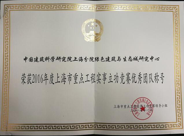 上海分院绿色建筑与生态城研究中心喜获2016年度上海市重点工程实事立功竞赛优秀团队称号