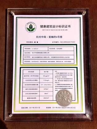 图为我院咨询的杭州中南紫樾府项目获得了国家首批健康建筑评价标识